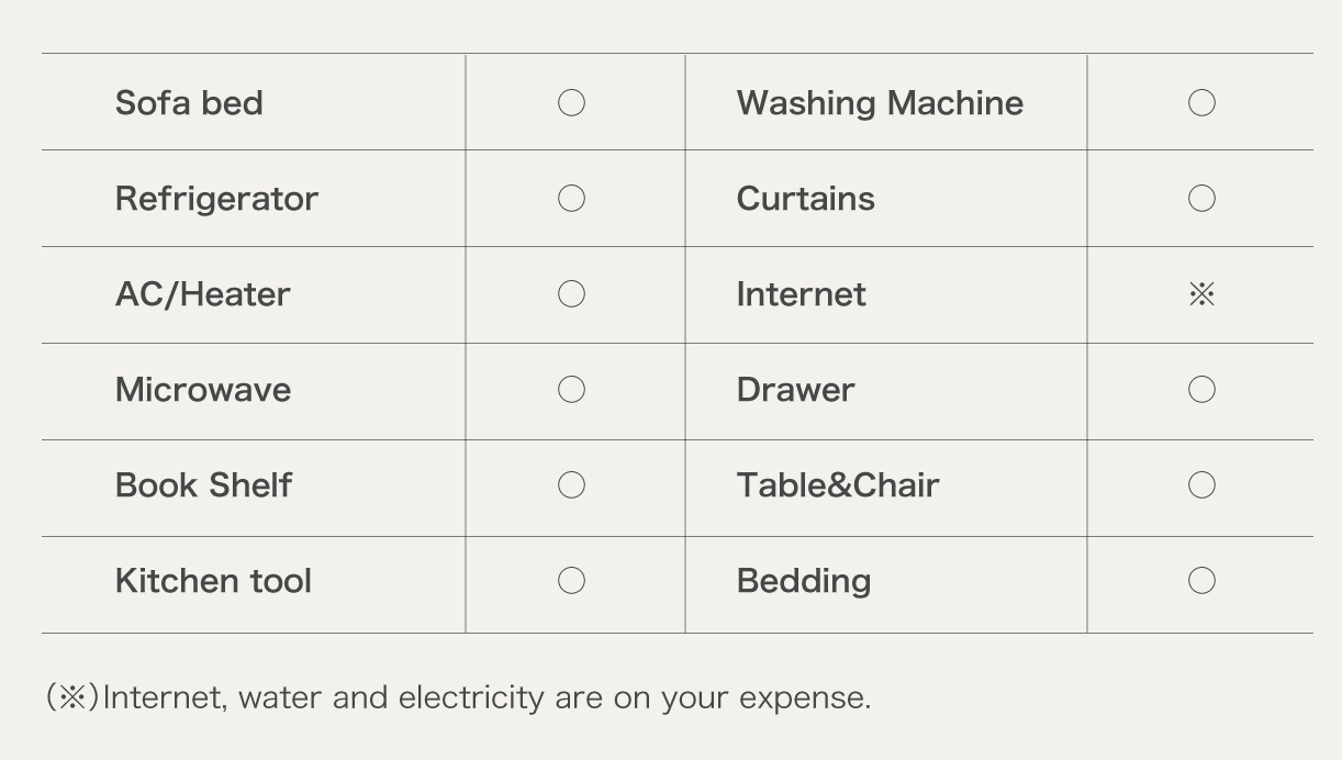 For fixed-term apartments, the price includes electricity, water and internet.